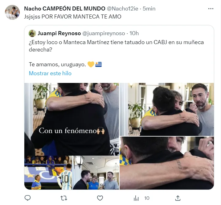 ¿Qué pasó? En las redes sociales se viralizó una foto de Martínez abrazando a Lionel Messi en la que pudo verse un tatuaje en su muñeca derecha con las siglas del CABJ. Sí, el pañuelo rojo se cambió por la tinta.