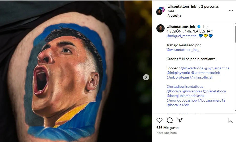 Ahora, un hincha se hizo un tatuaje muy realista de su grito de gol. El tatuador Eduardo Pintos (@wilsontattoos_ink_ en Instagram) compartió una foto de su obra junto a los materiales utilizados y mencionó que lo hizo en una sola sesión de 14 horas.