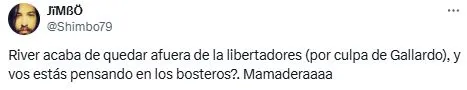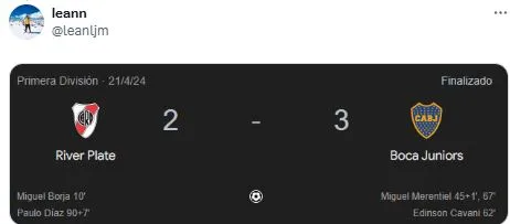 Además de los memes por parte del Xeneize, los simpatizantes del Único Grande no perdonaron a un periodista hincha del Millonario por uno de sus polémicos posteos en “X” (Twitter). Con cierto enojo por lo sucedido en el Monumental, Guido Glait publicó: “La tristeza más grande del año se la dio River (con suplentes) y la alegría más grande del año se la dio River. Como en la historia. Viven de River. Siempre River. Así es la vida de otros. Suele pasar”.