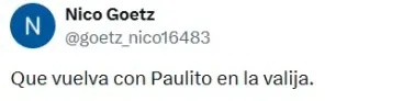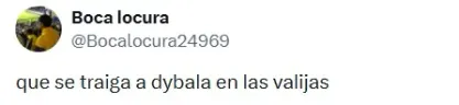 En medio de un futuro entre signos de interrogación y la ilusión del cuadro de la Ribera por tenerlo en 2026, Paredes volvió a encontrarse con la “Joya”, que esta vez no pudo sumar minutos. Y ante este cruce, los “Xeneizes” fueron claros en “X” (Twitter): “Que se traiga a Dybala en las valijas“, “Fue a buscar a su amigo” o “Fue a convencerlo“.