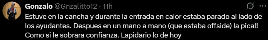 En el calentamiento previo, se pudo ver a Edinson a un costado junto a una de las heladeras. En vez de participar de los ejercicios con sus compañeros, se sentó y siguió de cerca los movimientos precompetitivos. Esto generó mucho enojo entre los hinchas y en las redes salieron a cruzarlo.