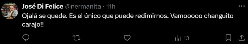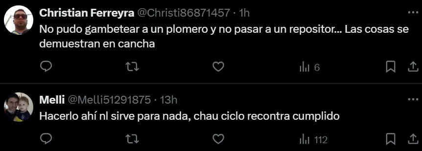 Sin embargo, las reacciones que más predominan hacia el “Changuito” son negativas, donde muchos piden por su salida. La paciencia del hincha en muchos de esos casos, llegó a su fin tras el mal partido hecho ante los neozelandeses que terminó en una molestia muscular y le impidió terminar el encuentro.
