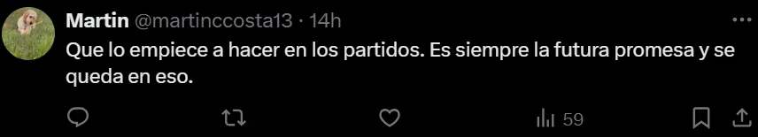 Esto generó varias reacciones por parte de los hinchas que se encuentran divididos entre el fin de su ciclo como futbolista del club y la necesidad de bancarlo para que pueda explotar realmente. “Ojalá se quede. Es el único que puede redimirnos”, “Es por lo puntos donde tenés que hacer la diferencia”, son algunos de los divididos comentarios que hubo sobre el video en cuestión.