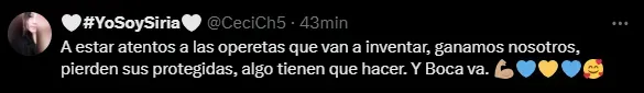“¿Coincidencia que justo desee el buen Viernes por primera vez luego del partido de ayer? No creo, siga firme CM“, fue la respuesta de un hincha de Boca a modo de broma al posteo en cuestión. Otra fanática fue más explícita y marcó: “Cuando vos ganas y el enemigo pierde, la vida es hermosa“.