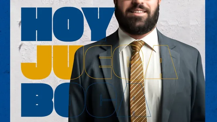 La placa hace referencia a la imagen que publica la cuenta oficial de Boca cada vez que anuncia un partido del equipo, pero en vez de tener a un futbolista del plantel cuenta con la figura del letrado.