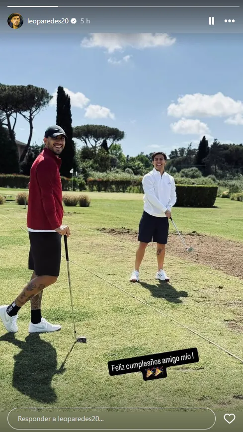 Este sábado, en medio de los rumores y todo lo que se habló, Paredes le dedicó una historia en Instagram. “Feliz cumpleaños amigo mío”, escribió el 5 de Boca junto a una foto con la Joya jugando al golf.