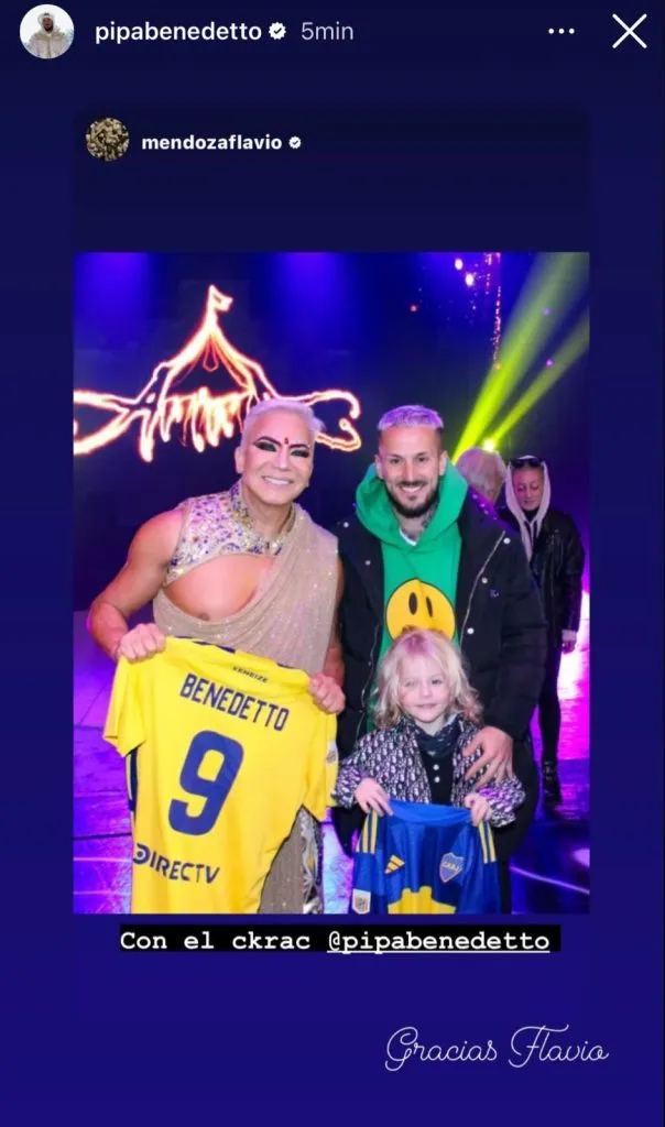 El DT Xeneize dio a conocer la lista de concentrados y el Pipa no está en ella. Y, tras revelarse esta noticia, el delantero reposteó una polémica foto a sus redes sociales: se mostró junto a Flavio Mendoza en su show. ¡Y estaba Furia de Gran Hermano de fondo! Abajo, el delantero escribió: “Gracias Flavio”.