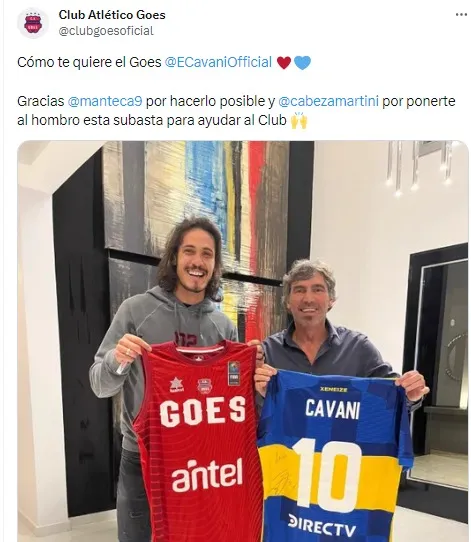 Por medio de otro exBoca como Sergio “Manteca” Martínez, el ex PSG donó la camiseta, con firma incluida, que utiliza en el club de la Ribera para que sea subastada a beneficio. La subasta comenzó con un precio de 2 mil pesos uruguayos y concluirá el domingo 17 a las del mediodía.