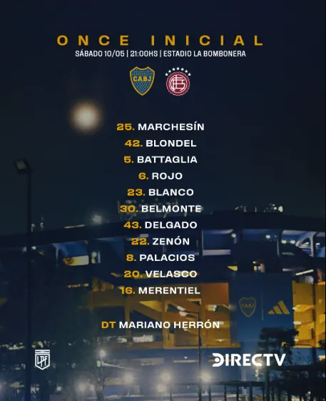 Boca recibe a Lanús en La Bombonera por los octavos de final del Torneo Apertura 2025. Mariano Herrón, DT interino del Xeneize, ya confirmó el 11 para esta noche con el que intentarán meterse entre los ocho mejores del torneo.