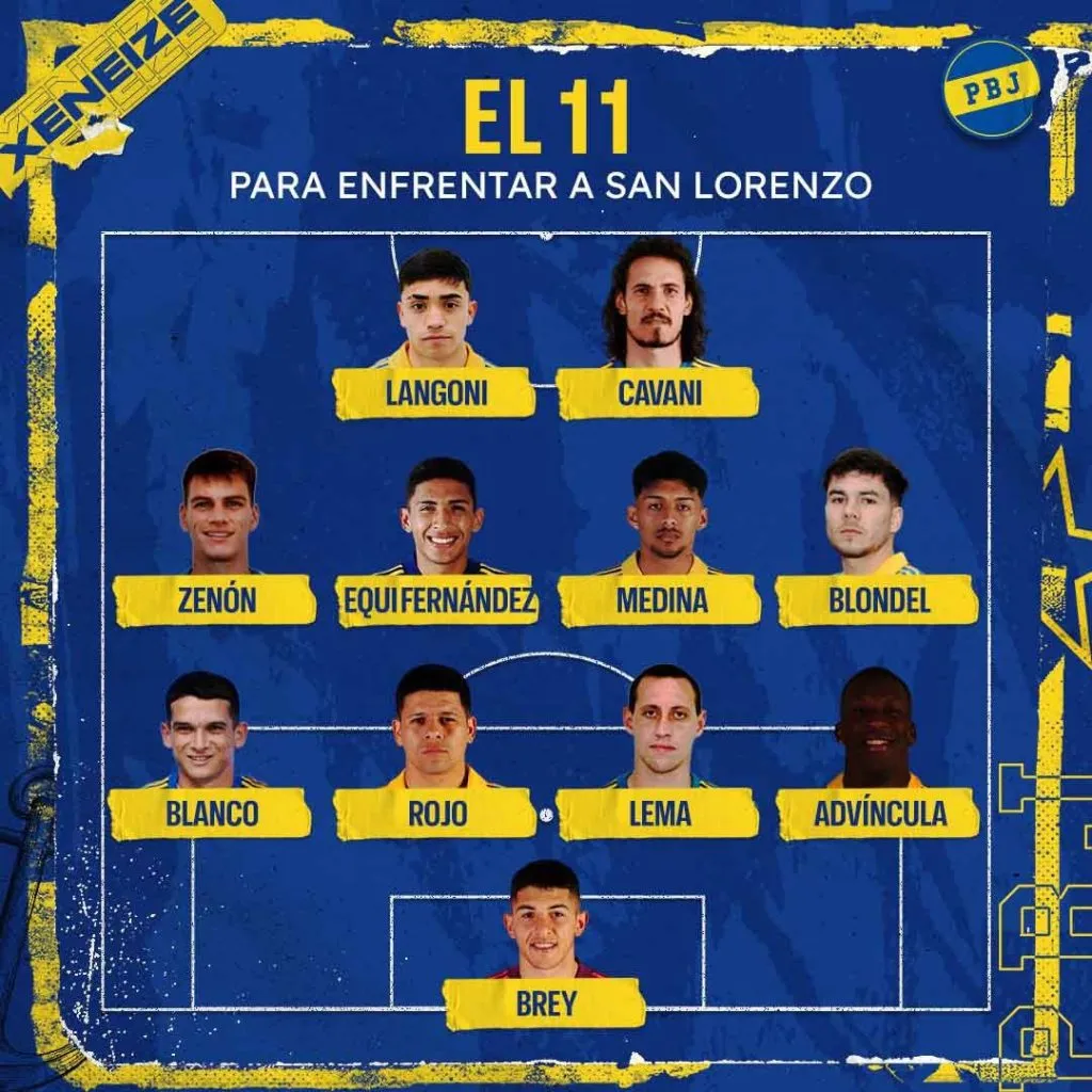 Boca irá con Leandro Brey; Luis Advíncula, Cristian Lema, Marcos Rojo, Lautaro Blanco; Lucas Blondel, Ezequiel Fernández, Cristian Medina, Kevin Zenón; Luca Langoni y Edinson Cavani.