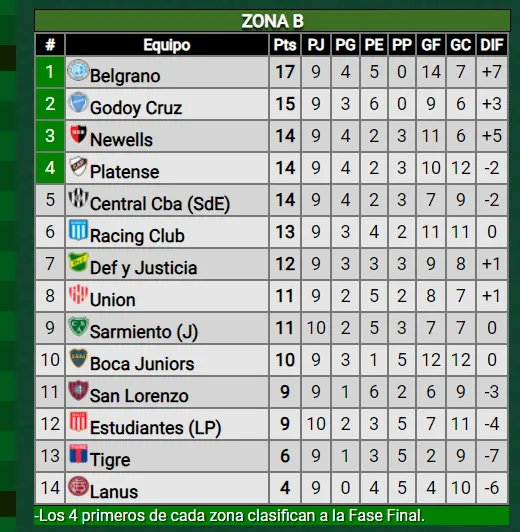 Antes de jugar contra Racing, Boca ocupa el puesto 10 de la Zona 2 de la Copa de la Liga Profesional. Con un detalle bastante particular: solamente está a cuatro puntos de Platense (14 puntos) el último clasificado a la próxima instancia del torneo. Quedan cuatro fechas por delante.