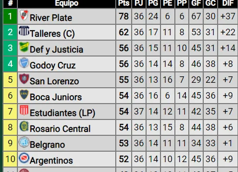 Con 56 puntos, Boca se encuentra en la sexta posición de la tabla anual (en puestos de clasificación a la Copa Sudamericana 2024). De ganar en Avellaneda, el equipo de Jorge Almirón podrían meterse en Copa Libertadores superando a Godoy Cruz y, según se den los resultados de esta tarde, también a Defensa y Justicia.