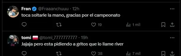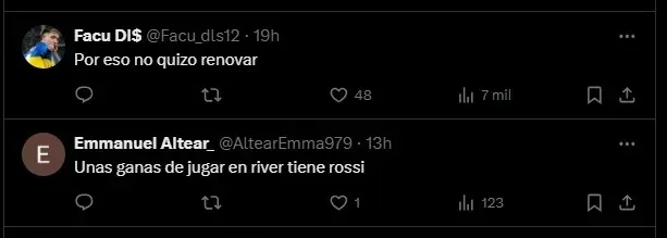 Como era de esperarse, los hinchas de Boca no tardaron en reaccionar a las declaraciones de Agustín Rossi. Y no dudaron en mostrar su enojo con el ex jugador del equipo Xeneize en redes sociales: “No es más que Javi García”, y “Toca soltarle la mano”.