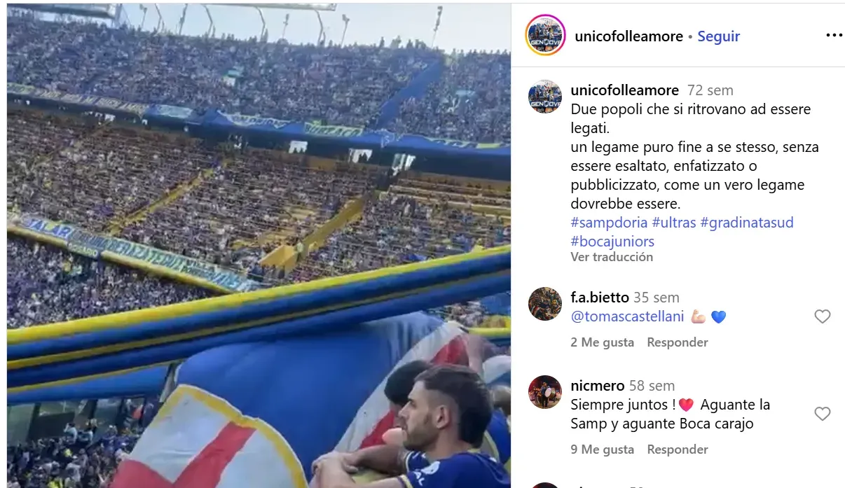 En Argentina se sabe que Boca tiene una conexión con Génova y también con el Genoa FC. Pero esa amistad también existe con Sampdoria y eso es algo que Ivan quiere que se sepa. Recuerda que la bandera de los “Blucerchiati” estuvo en La 12 en más de una ocasión y hasta menciona que hubo banderas de Boca en la cancha de “La Samp” también.