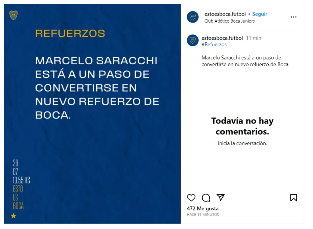 La cuenta “Esto es Boca Fútbol”, que tiene como fin principal despejar las dudas de lo que realmente sucede en el mercado del Xeneize, informó de forma totalmente inesperada que Marcelo Saracchi está a un paso de convertirse en nuevo refuerzo de Boca.