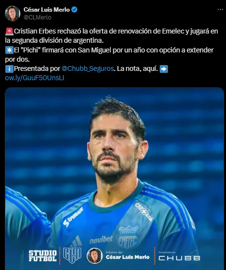 Cristian Erbes salió de las inferiores de Boca y jugó durante varios años en el club. En 2016 se fue y pasó por varias instituciones del país y también del exterior. De hecho, hasta fin de año tiene contrato con el Emelec de Ecuador.