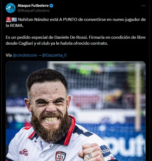 ¿Vuelve a encontrarse? Nández está cerca de la Roma de De Rossi