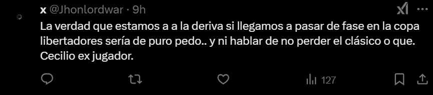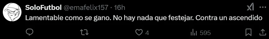 El equipo de Martínez venció 2-1 a Recoleta FC, pero los simpatizantes del Ciclón de Barrio Obrero criticaron duramente la forma en la que ganó el equipo. “Lamentable como se ganó. No hay nada que festejar. Contra un ascendido”, manifestó un hincha, descontento por el nivel de juego mostrado. Otro directamente aseguró que el equipo no tiene un buen juego: “este equipo no juega a nada”.