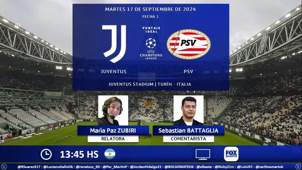 Este martes 17 de septiembre, Sebastián Battaglia hizo su debut como comentarista de televisión en Fox Sports. Y fue para el partido de la primera fecha de la UEFA Champions League entre Juventus y el PSV de Países Bajos.