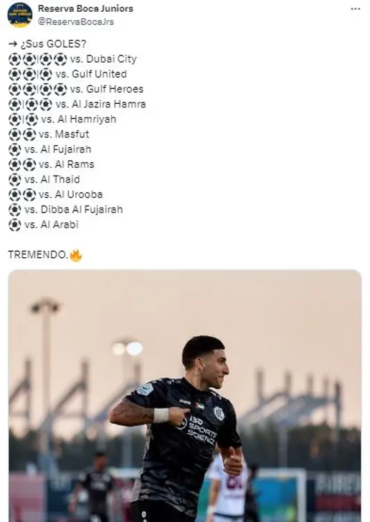 De acuerdo al dato que brindó la cuenta @ReservaBocaJrs, Torres es el argentino con más goles en su liga local durante la temporada 2023/24. En total, lleva 26 conquistas con la camiseta de United FC, institución que milita en el ascenso de los Emiratos Árabes, y lidera la tabla por encima de Icardi (25) y Martínez (24).