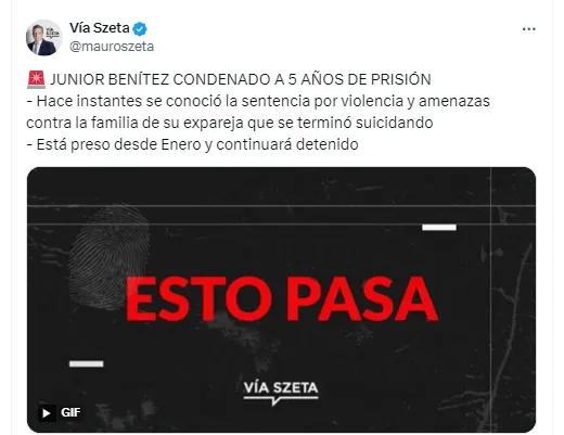 “Junior”, de 31 años, está destenido desde el mes de enero tras el suicidio de suexpareja. Antes del trágico episodio, la Justicia impuso una restricción de acercamiento al futbolista sobre Anabelia: los encargados de la causa tenían lo sospecha de que Benitez había violado la perimentral días antes de que la joven tome la decisión de quitarse la vida.