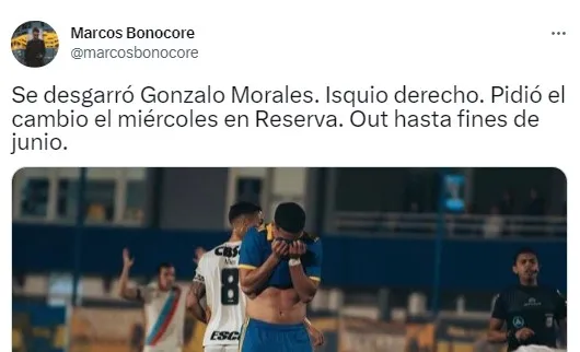 Los estudios médicos arrojaron que solo padece una contractura que lo pone en duda para el próximo duelo frente a Colo Colo en La Bombonera. Pero, las malas noticias continuaron ya que se confirmó la lesión de Gonzalo Morales que lo marginará de las canchas por varias semanas.