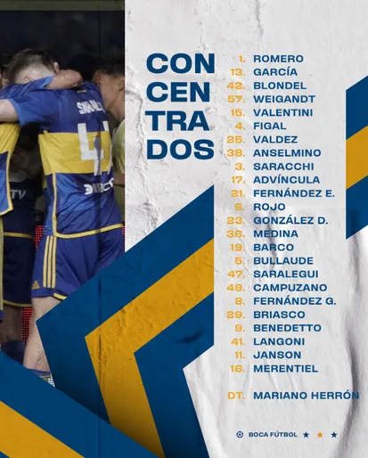Mariano Herrón anunció los citados para jugar contra el Pincha por las semifinales de la Copa Argentina (miércoles 22/11, a las 21:10, en el Mario Alberto Kempes de Córdoba). Y en la lista figuran cinco centrales: Nicolás Valentini, Nicolás Figal, Bruno Valdez, Aaron Anselmino y Marcos Rojo.