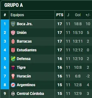 Pero con la reciente victoria en La Bombonera frente a Newell’s, el panorama cambió por completo. El Único Grande no solo se metió entre los ocho mejores, sino que escaló a lo más alto con 17 puntos y depende de sí mismo, para asegurar su boleto a los playoffs.