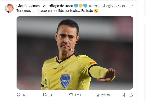 “Que hagan toda la brujearía del mundo… ¡Tenemos protección!”, respondió Armas, de reconocida relación con Jorge Almirón y el cuerpo técnico del Xeneize. El astrólogo del club fue ganando popularidad a lo largo de la vigente Copa Libertadores y los hinchas, atados a todo para poder conseguir el gran objetivo, le piden “un acierto más”.