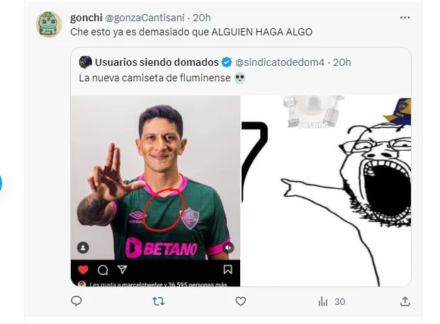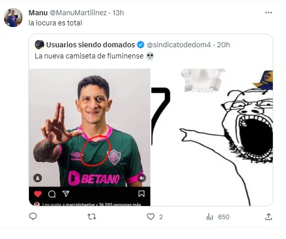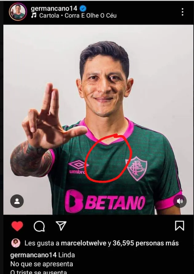 Fue Germán Cano quien subió en sus redes el posteo con la nueva suplente del equipo de Río de Janeiro. Y los hinchas no tardaron en darse cuenta de un detalle especial: en el doblado de la remera, justo en el pecho del delantero, se marca un 7. Quien subió la captura fue la cuenta ‘Usuarios siendo domados’. Y sí, se llenó de comentarios de fanáticos del Xeneize.