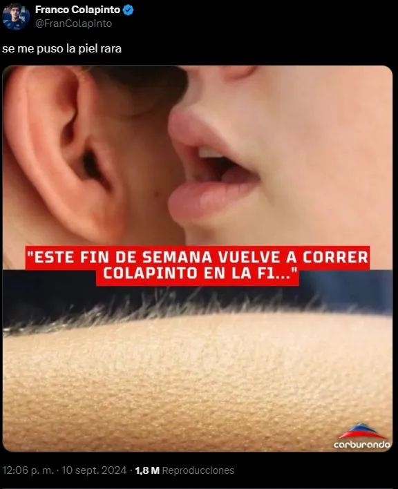 El oriundo de Pilar ya había manifestado abiertamente ser hincha de Boca y lo demostró de diferentes formas. En sus redes sociales compartió un meme relacionado a su primera carrera en la Fórmula 1 y escribió: “Se me puso la piel rara“.