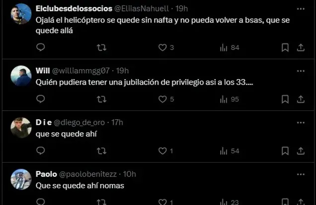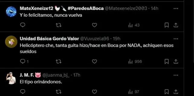 De esta manera, por su presente y sabiendo que lo más probable es que se vaya, los hinchas de Boca no dudaron en criticar al defensor. Y dejaron todo tipo de comentarios: “Que se quede ahí”, y “Ojalá el helicóptero se quede sin nafta y no pueda volver a Buenos Aires”.