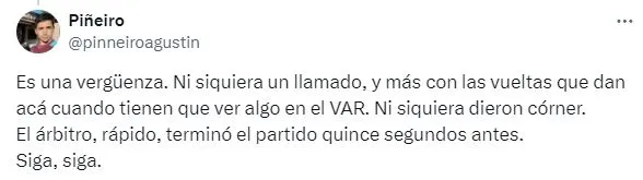 Esta jugada generó todo tipo de opiniones y en las redes sociales, los hinchas dieron su veredicto. Algunos usuarios pidieron por el penal a favor y mostraron su disconformidad por el fallo arbitral. “Es una vergüenza” o “Tenía que revisar” fueron algunos de los comentarios en redes sociales. Mientras que otros apuntaron contra el nivel del equipo ante la diferencia de jerarquía con el Guapo.