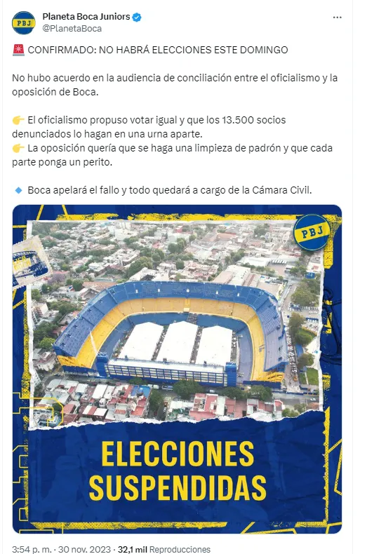 Boca apelará al fallo del Poder Judicial de La Nación, firmado por la jueza Alejandra Abrevaya ante la denuncia de la oposición, que determinó la suspensión de las elecciones por “irregularidades en el patrón electoral”. El quiere que los comicios se realicen lo antes posible.