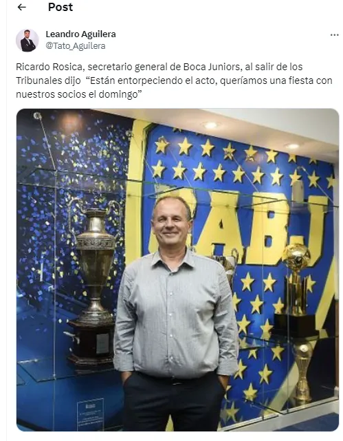 “Están entorpeciendo el acto, queríamos una fiesta con nuestros socios el domingo”, soltó Rosica, que estuvo en la reunión en representación de la lista de Juan Román Riquelme y Jorge Amor Ameal. El testimonio fue revelado por el periodista Leandro Aguilera a través de su cuenta de Twitter.