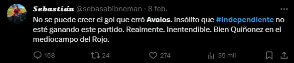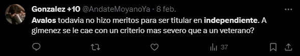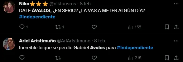 A través de Twitter fue que en el Mundo Independiente demostraron su descontento con Gabriel Ávalos. Muchos fueron muy duros con él y destacaron que “es un fiasco“.