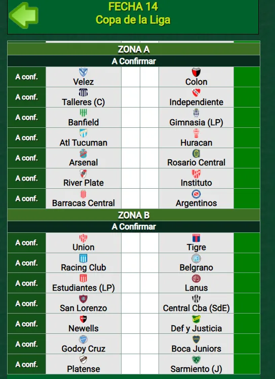 Estudiantes de La Plata: tras sumar de a tres en Santiago del Estero, el equipo de Eduardo Domínguez definirá de local en la última fecha de la Copa de la Liga. Recibirá a Lanús, que también tiene posibilidades matemáticas de entrar a la Copa (56 puntos).