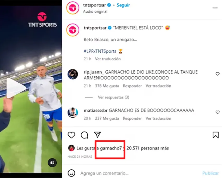 En febrero de 2023, un guiño de Alejandro Garnacho sorprendió a todos los hinchas de Boca. El delantero del Manchester United le dio like a una publicación de post partido del Xeneize en la que Norberto Briasco hablaba de Miguel Merentiel. Y, por supuesto, esa acción fue viral.