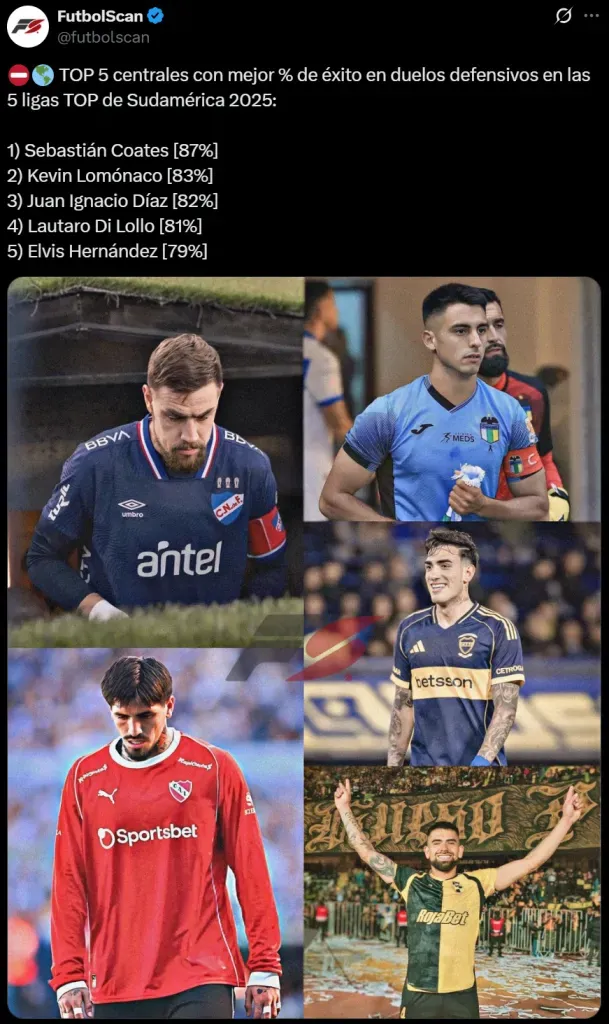 Hoy, es una de las grandes figuras del plantel, sumado a que es uno de los inamovibles del cuerpo técnico. Por supuesto, este enorme momento no sólo viene respaldado por lo futbolístico, sino también por los números. Y en ese sentido, hay un dato que coloca a Di Lollo entre los mejores centrales del continente.