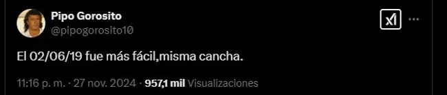 En las semifinales de la Copa Argentina del 2024, Boca cayó ante Vélez en un partido que en ese entonces era muy importante para el Xeneize. Y tras darse el resultado, uno de los protagonistas que se pronunció en redes sociales fue Pipo Gorosito.