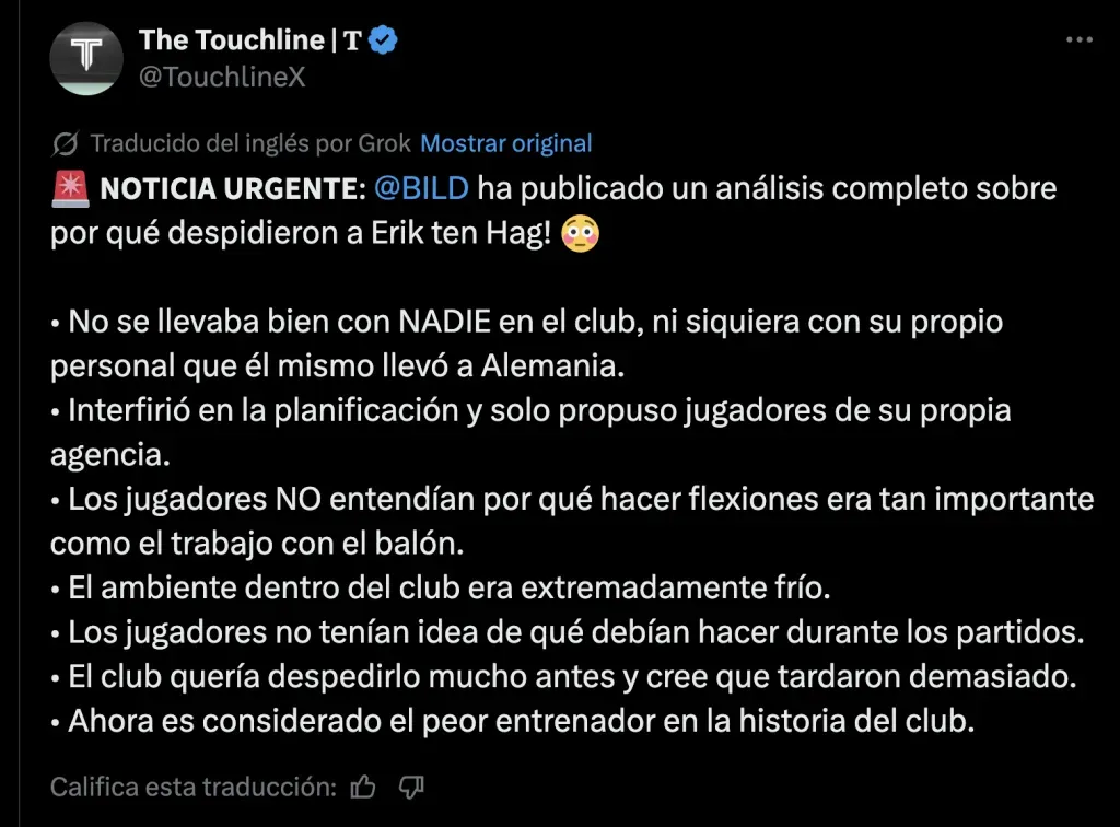 De esta manera, el ex DT de Manchester United y Ajax estuvo solamente 2 meses en el cargo y llegó a dirigir 3 partidos oficiales. Y ahora, la prensa alemana informó los 7 increíbles motivos de su llamativo despido.