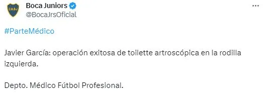 García fue intervenido en la rodilla izquierda.