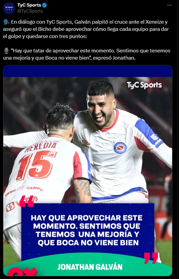 En la previa del encuentro, un futbolista del Bicho se refirió a la situación actual del Xeneize y sacó pecho. “Hay que aprovechar el momento de Boca, que viene un poco golpeado y sin entrenador, tenemos que tratar de dar lo mejor. Tenemos una mejoría y Boca no viene bien“, expresó Jonathan Galván en diálogo con TyC Sports.