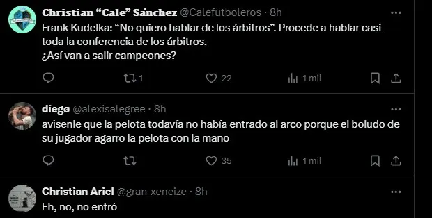 Sin embargo, en conferencia de prensa, Kudelka se mostró convencido de que tras la falta, su equipo había marcado el gol. Situación que nunca pasó. Ante esto, declaró: “No veo nada raro, no me voy a posar en esta situación. Es rarísimo el reglamento, aparte hicimos el gol. Acertar o errar nos puede pasar a todos”.