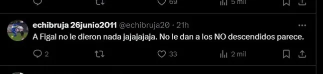 Entre todos estos factores, los fanáticos del Unico Grande dieron a entender que hay una diferenciación entre Boca y River, tanto desde el club de Avellaneda como sus hinchas. “A Figal no le dieron nada jajaja como se nota“, “El problema es que es traición si juega en Boca” o “Che pero Figal???” fueron algunos de los comentarios en “X” (Twitter).