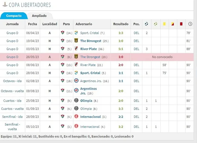 Desde su llegada a Fluminense en 2022, Germán Cano marcó un total de 80 goles en 120 partidos con la camiseta tricolor. A su vez, es el actual goleador de la Copa Libertadores con 12 goles en 11 partidos jugados.