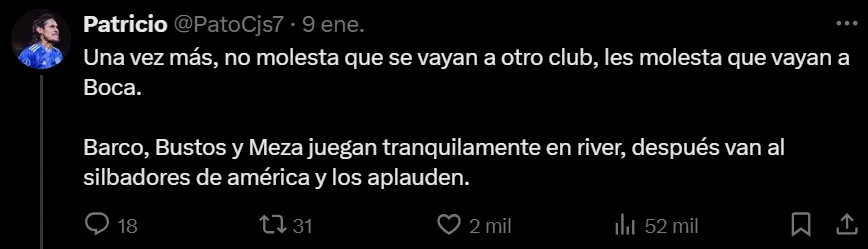 Ante esto, los que se pronunciaron por el pase que concretó el cuadro azul y oro, fueron los hinchas de Independiente que mostraron su descontento por la decisión que tomó el jugador.
