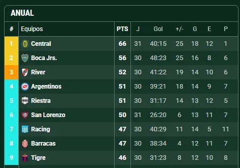Si hay igualdad en La Bombonera, Boca deberá esperar que ni Riestra ni Argentinos ganen el lunes sus respectivos partidos. Si bien solamente podrían igualarlo en puntos, lo cierto es que por diferencia de gol podrían llegar a superarlo en la última fecha en caso de ganar.