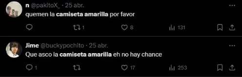 Como se mencionó, Boca jugó nuevamente con la camiseta amarilla contra Fortaleza y fue derrota en Brasil. Tras esto, los hinchas reaccionaron en las redes sociales y “responsabilizaron” a la indumentaria de la caída del equipo de Diego Martínez.
