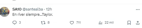 La frase viral que se multiplicó fue un juego de palabras con la sentencia de la página de River y el origen del cambio de localía: la serie de shows de la cantante estadounidense: “En River siempre… Taylor”.